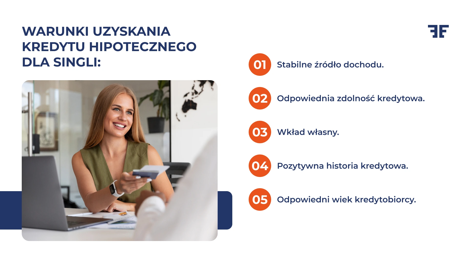 У випадку з самотніми людьми важлива кредитоспроможність заявника, а не його сімейний стан. Одинока людина з хорошим заробітком і стабільною зайнятістю повинна мати можливість отримати іпотеку на привабливих умовах без особливих проблем. Банки в першу чергу оцінюють здатність потенційного позичальника погасити зобов’язання. Тому сімейний стан не є перешкодою.